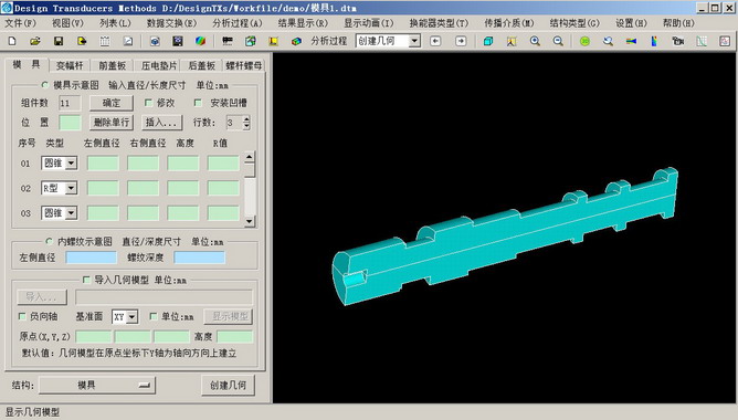 超声模具设计,我们用超声系统设计软件,实现理论分析和设计定型。针对超声模具、工具头、变幅杆以及模具和变幅杆装配体进行理论分析和设计,吸收了传统的等效法优点,结合有限元法,使得有限元法从深奥理论算法转变成具有工程实际应用,从而成为结构工程师必备的设计、分析工具。