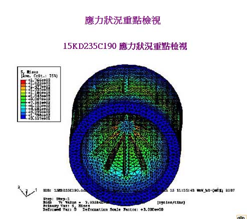 从喇叭正面影像观看喇叭应力分布状况,应力集中度及应力相对值。