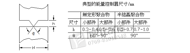 无定形和半结晶聚合物所用的能量导向嚣的近似尺寸