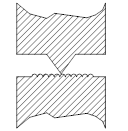 此图所示的焊接接头是对普通能量控制接头设计的独特的改进.下面式件用一个粗糙或有纹理的表面改进.将会提高焊接质量,焊接强度和焊接完成的容易程度.其它许多有纹理的接头外形也是可行.