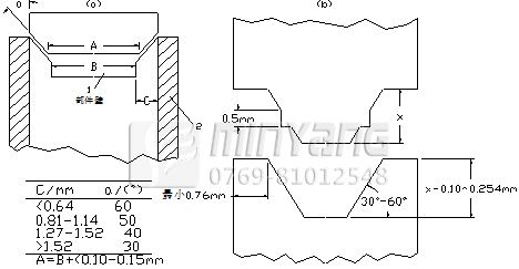 *剪切接头 当焊接半结晶聚合物(或其它难以焊接的聚合物)和需要密封接头号时,一般推荐使 用剪切接。需要高强度,高质量接碚的环形和矩形制件都用剪切接头。剪切接头号具有搭接制件壁部分,当接头被焊接和相互依次嵌入时,搭接部分产生公差和局部剪切。为了促进制件找平,接头包含了调节部分。为了集中熔融能量,一边上的阻碍物的顶角在初始接触面上降低。因为融化材料的温度在整个接触面上保持一致,制件被焊接时,两表面熔融均匀。深度为1.0-2.0mm的使用0.13-0.5mm范围内的公差值。为了防止在焊接过程中由于公差而产生的外部侧壁翘曲,垂直的制件应尽可能浅,但在一边用剪切制件改进的槽舌接头可与较深的拉伸制件一起使用,提供中壁接头,它使由于公差而产生的侧壁翘曲小。如图所示。(a)焊接前的部件; (b)焊接后的部件