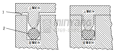 带嵌入密封装置的焊接 用嵌入的弹性密封圈或韧性垫圈也可获得可靠的密封。如图7所示接头制件装有一个弹性环,以改善用超声焊接接合可达到的密封安全性,或在连续的周边焊接不可能的情况下使用。