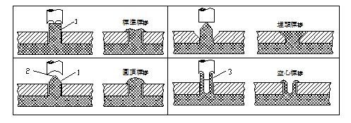 *溢流式铆焊 溢流式铆焊用在要求表面为平的或隆起的及锁信制件的厚度被允许使用的应用中。
