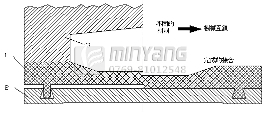 1-φ≧1.6mm的铆钉;2-尖锥触发熔融;3-φ≧14.0mm的铆钉