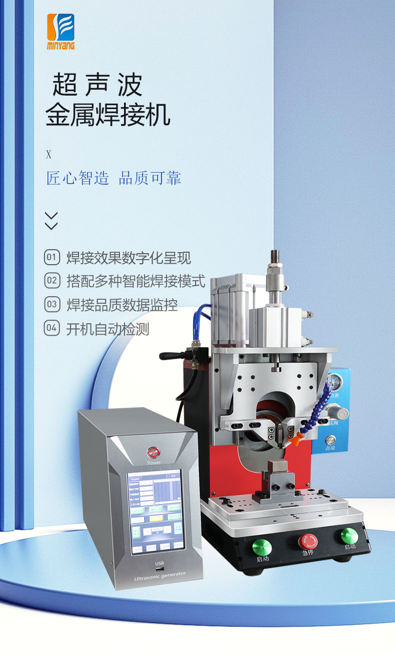 超声波金属焊接机是利用超声波高频振动磨擦原理把超声波振动的能量转换成摩擦能量传递到需焊接的金属表面,在摩擦产生热量的同时对其施加压力的情况下,使金属结构分子充分激活而形成分子层之间熔合的新型设备。