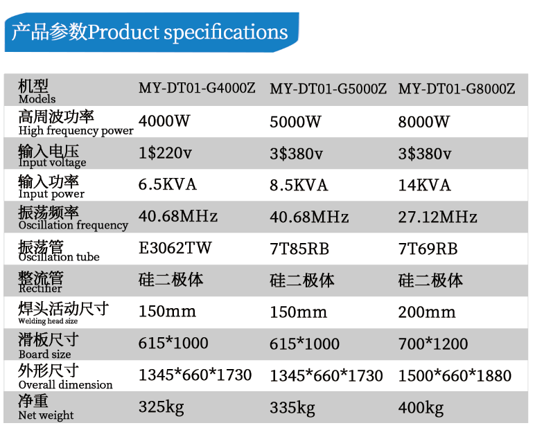 采用日本产东芝(JAPAN TOSHIBA)振荡管.滑盘式工作台面,感应式磁力定位.