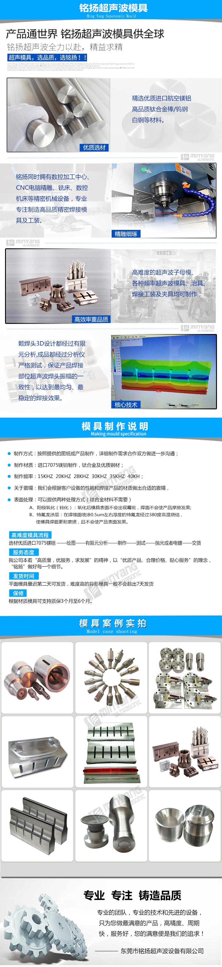 铭扬超声波专业设计和制作超声波花轮、花边模,平板模、无缝内衣专用模、缎带专用模、皮带模等模具是经电脑雕刻、火花机放电、内外圆磨等工艺制作出来的,生产出来的模具美观、经久耐用。