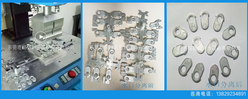 锌合金水口分离机是利用超声波机械振动原理,使焊头压住压铸件进行每秒几万次的高频振动,将锌合金上的水口震落分离。目前广泛应用于各种装饰方面锌压铸产品,如家具配件、建筑装饰、浴室配件、汽车零件,灯饰零件、玩具、领带夹、皮带扣、各种金属饰扣等锌合金产品的水口震落。