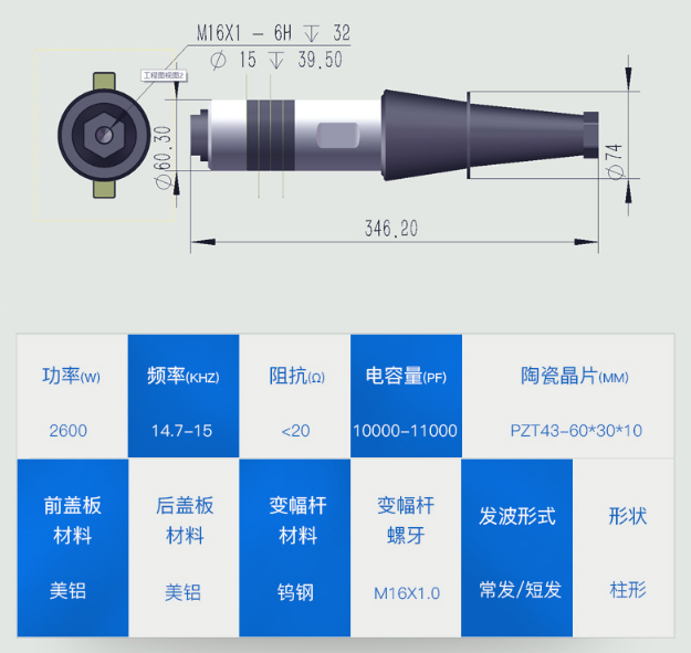 铭扬15K 超声波换能器"的总频差为0.00001(MHz),温度频差是0.00001(MHz),输出阻抗为0.015(kΩ),调整频差是0.0005(MHz),基准温度为20(℃),激励电平是0(mW),插入损耗为0(dB),负载谐振电阻是15(Ω),标称频率为0.015(MHz),种类是换能器,加工定制为是,负载电容是(pF),输入阻抗为0.015(kΩ),型号是MY-1526-6D,阻带衰减为0(dB)