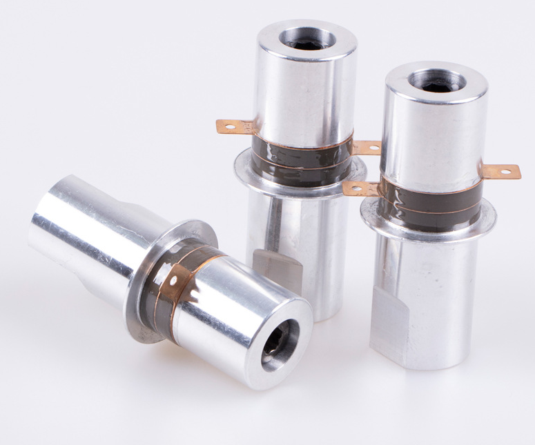铭扬35KHZ超声波换能器是将电能转换成机械能(超声波)的器件,其中成熟可靠的是以压电效应实现电能与声能相互转换的器件,称为压电换能器。它由中央压电陶瓷元件,前后金属盖板,预应力螺杆,电极片以及绝缘管组成。这种夹心换能器(螺栓紧固型换能器)在负荷变化时产生稳定的超声波,是获得功率超声波驱动源的基本主要的方法。根据不同的设计,它们的形式主要有柱型(ntk式或台湾式或日本式,前后金属盖板直径相同),倒喇叭型(美国式,前盖板直径通过弧型过度缩小),柱型钢后盖(铭扬式),柱型中间有节等(台湾式)。